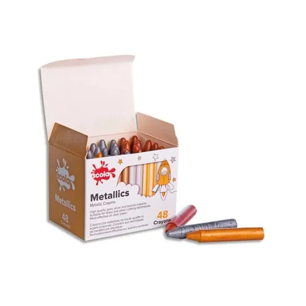 METALLICS, boîte de 48 crayons cires couleurs métal – Scola