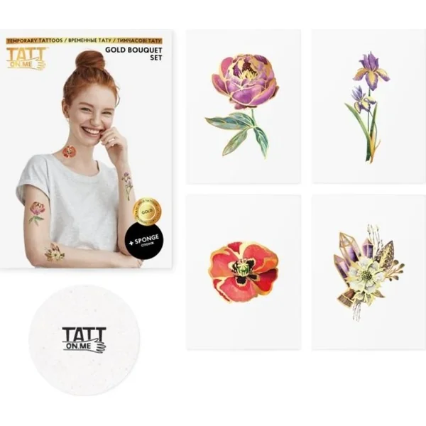 TATTonMe Tatouages métalliques pour femmes Bouquet ensemble Or