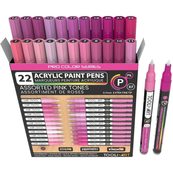 TOOLI-ART Marqueur Acrylique Set Rose 22 couleurs EF 07mm