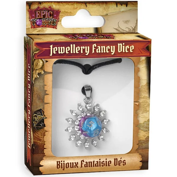 Bijoux Pendentif Soleil Dés D12 violet/bleu – Epic Forge