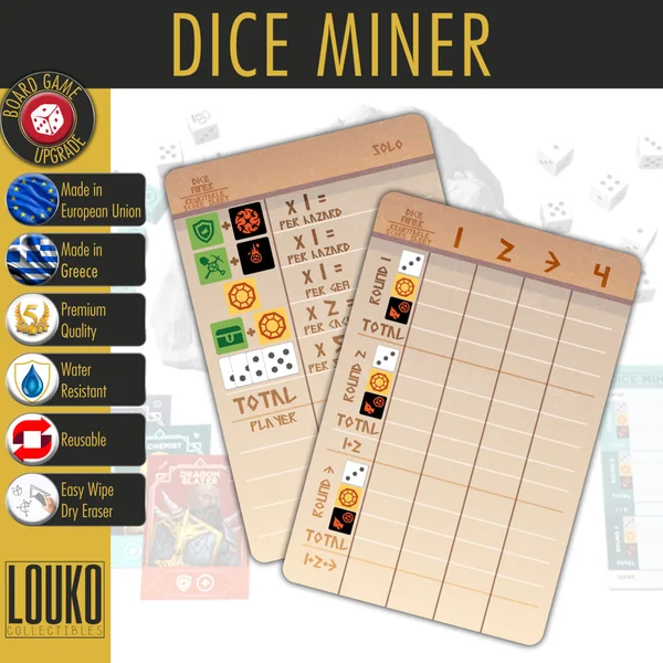 Dice Miner – Feuille de score réinscriptible