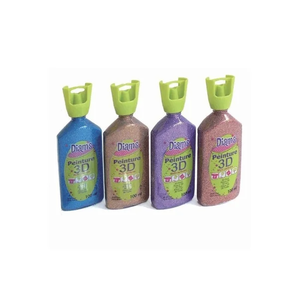DIAMS Peinture 3D Lot de 4 flacons 100ml pailletés
