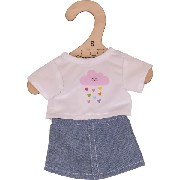 Bigjigs Toys T-shirt blanc avec jupe en jean pour poupée 28cm