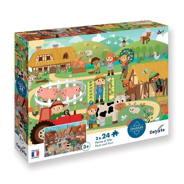 Puzzle 2 x 24 pcs Ferme & ville – Calypto