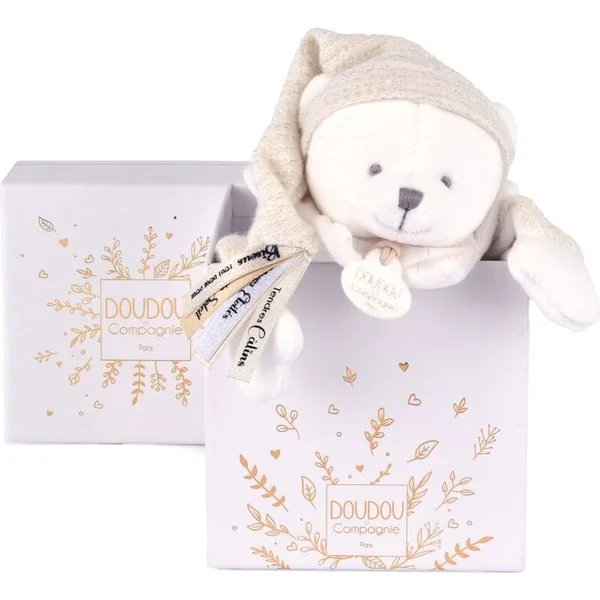Doudou Coffret Cadeau Peluche câlin ours avec bonnet beige 25 cm