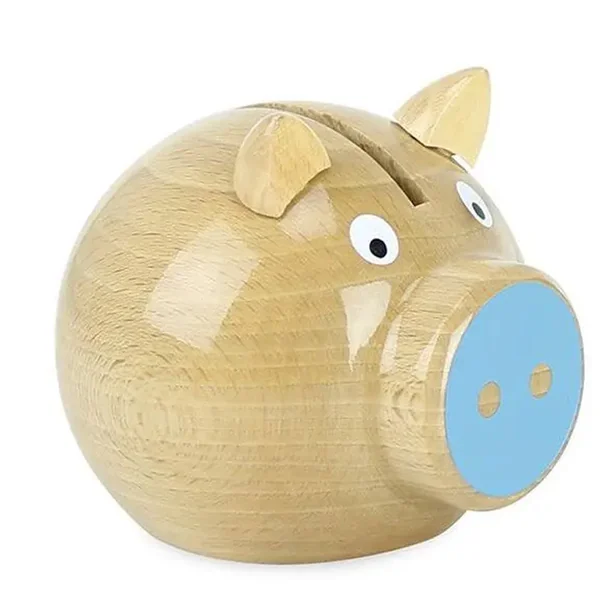 Tirelire cochon bois naturel-bleu – Vilac