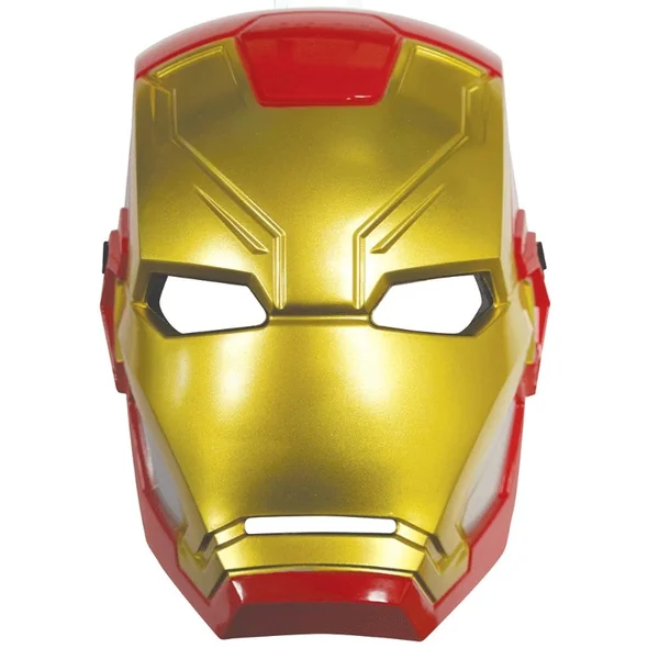 Un masque en PVC rouge et doré à l’effigie du super-héros Iron Man.
