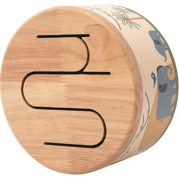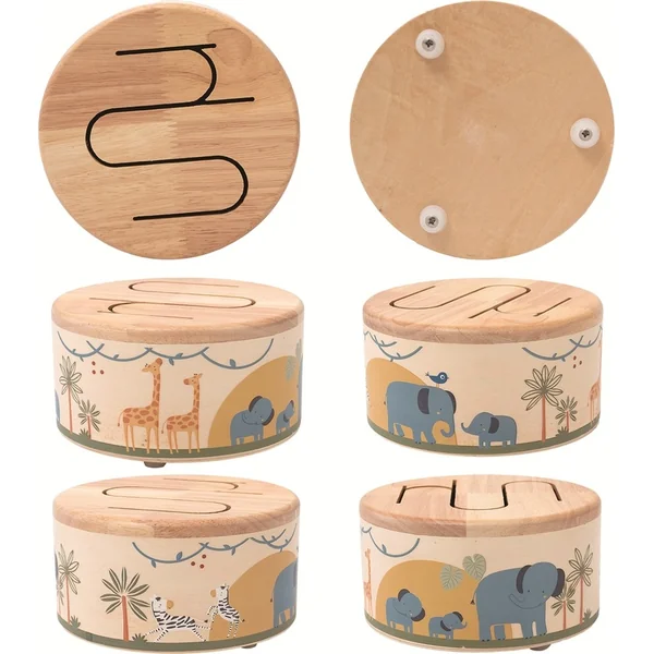 Un joyeux tambour en bois avec des motifs de safari apporte aux enfants la joie de découvrir le rythme et le monde des animaux. Sur le tambour, vous trouverez de charmantes illustrations d’éléphants, de girafes et de zèbres qui enchanteront chaque petit enfant.