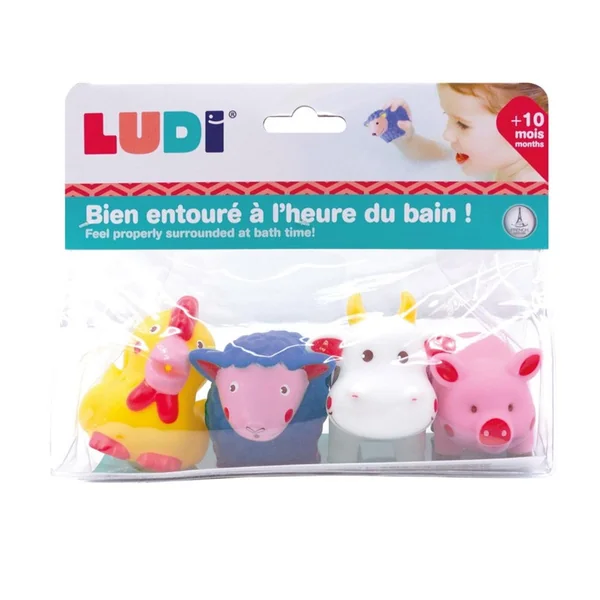 4 animaux de la ferme pour s’amuser à s’arroser à l’heure du bain ! Les aspergeurs de LUDI permettent aux enfants de développer leur habileté et leur imagination.