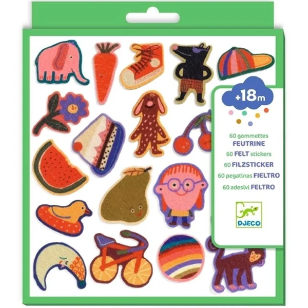 60 gommettes douces en feutrine imprimée, spécialement pensées pour les petites mains dès 18 mois. Leur texture toute douce et leur forme facile à attraper offrent une première initiation au collage tout en douceur. De jolies illustrations rigolotes qui stimulent la motricité fine, la créativité… et le plaisir de coller !