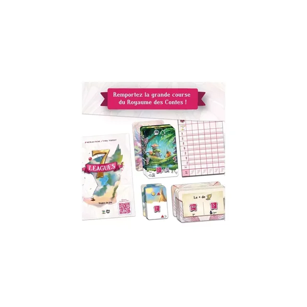 7 Leagues est un jeu de cartes stratégique et féerique pour 2 à 6 joueurs. Tour après tour, composez votre voyage en posant des cartes terrain devant vous et en repiochant selon la météo. Créez les meilleures synergies, activez des combos et formez des bottes pour marquer un maximum de points.
