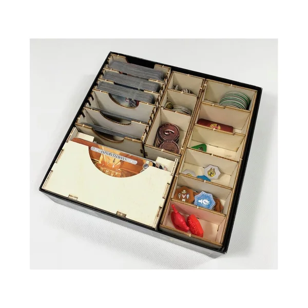 Organiseur en bois compatible avec 7 Wonders Duel avec extension Pantheon, en contreplaqué de bouleau de 3mm.