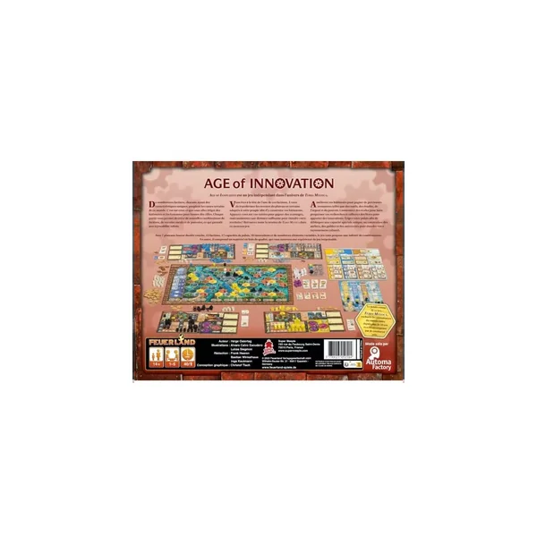 Age of Innovation est un jeu expert indépendant dans l’univers de Terra Mystica, qui se veut plus complexe que son prédécesseur ! 1 à 5 joueurs, dès 14 ans, Partie de 40 minutes par joueur, le jeu est édité par Super Meeple.