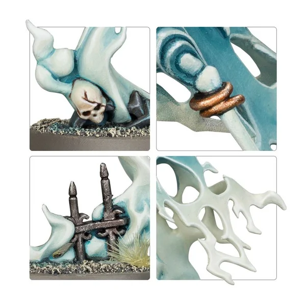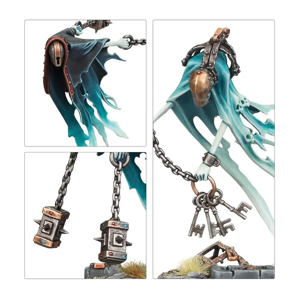 Les figurines de cette boîte sont faciles à personnaliser. L’Esprit Tourmenteur dispose d’un choix de trois têtes, et les Mânes Enchaînés disposent d’un choix de quatre masques différents. Ils disposent également d’options décoratives pour leurs socles, comme des chaînes, des cages, et plus encore.