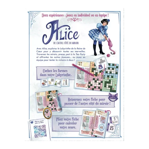 Alice – de l’Autre côté du Miroir est un jeu de société à cocher jouable de 2 à 6 joueurs, dès 10 ans pour des parties d’environ 30 minutes, édité par Lumberjacks Studio.