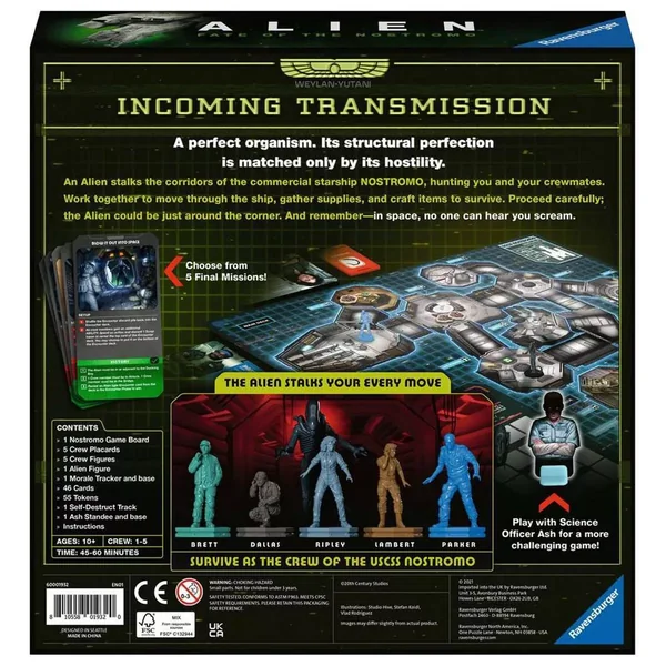 Dans Alien : Le Destin du Nostromo, Incarnez l’équipage du Nostromo, Ripley, Lambert, Parker, Brett ou Dallas, et travaillez ensemble pour vous déplacer dans le vaisseau, rassembler des fournitures et fabriquer des objets pour atteindre vos objectifs. Pour gagner, remplissez vos objectifs et l’une des cinq missions finales avant que votre moral ne s’épuise. Et n’oubliez pas : dans l’espace, personne ne peut vous entendre crier.