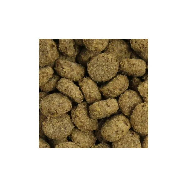 Composition : viande de poulet, poulet, viande de poisson, betterave séchée, abats de poulet, œufs séchés, graisse de poulet, amidon de maïs, farine de riz, levures séchées, fructooligosaccharides, huile de poisson, graines de lin, DL-méthionine.