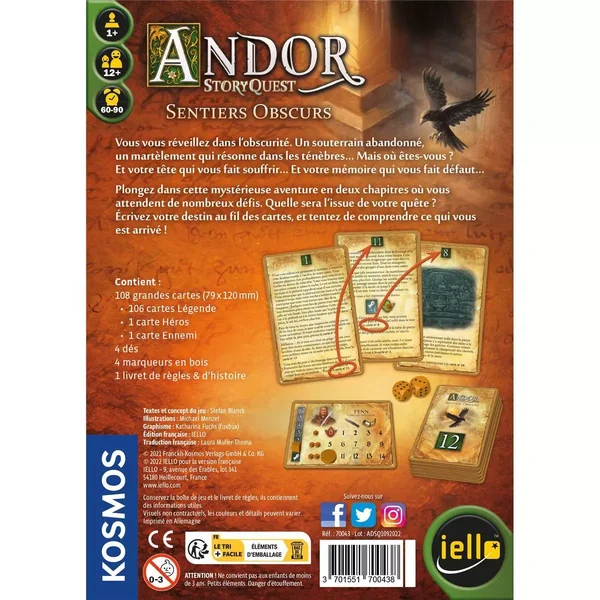 A chaque nouvelle carte, vous vous rapprochez un peu plus de la solution dans ce jeu d’aventure. Tout comme dans les grands matchs d’Andor, la force et la volonté joueront un rôle important. Il y a plus qu’assez de raisons de les utiliser : les sinistres créatures d’Andor se cachent dans l’ombre et sont prêtes à se battre !