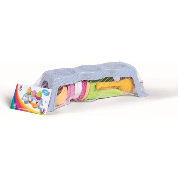 Ensemble de 10 moules à sable – glace dans un support. Fabriqué en Italie à partir de plastiques de qualité.