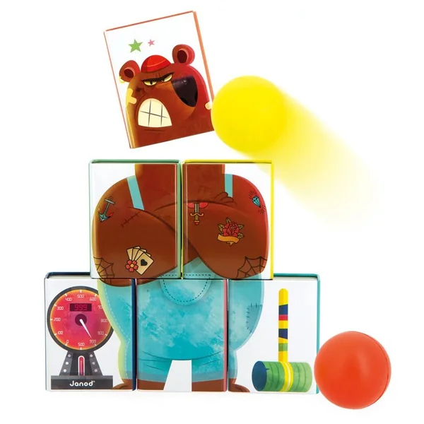 Dès 3 ans, les enfants vont se hisser en haut du classement avec ce jeu de chamboule-tout ! Pour cela, il faudra faire preuve d’adresse et viser juste. Leur objectif : faire tomber un maximum de boîtes en un minimum de lancer !