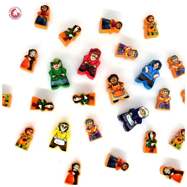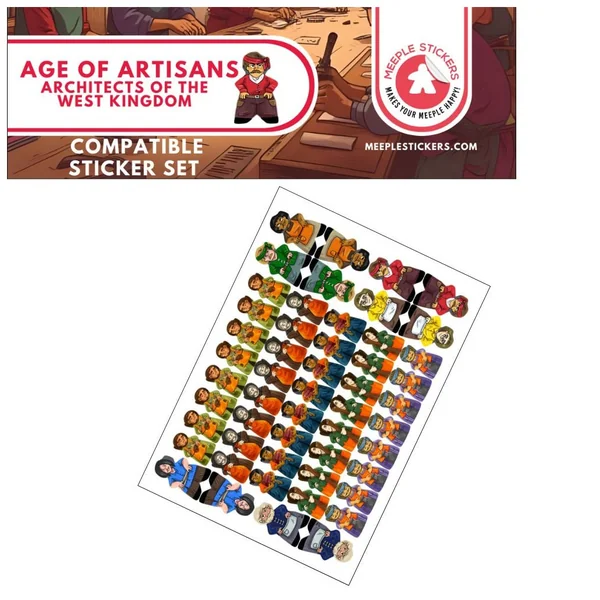 Dans Architectes du Royaume de l’Ouest: L’Age des Artisans, les compagnons sont de retour en ville en tant qu’artisans maîtres. La guilde n’a jamais été aussi animée – et désormais, vous pouvez donner à tous ces maîtres et ouvriers une personnalité unique grâce à nos autocollants colorés conçus spécialement pour ces meeples. Collez-les et profitez d’une immersion encore plus forte !