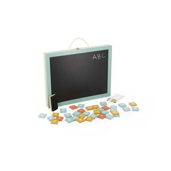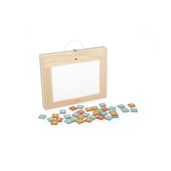 Ensuite, 1 ardoise blanche magnétique avec 42 magnets (27 lettres ,10 chiffres et 5 signes) pour apprendre l’alphabet, à écrire ses premiers mots ou réaliser ses premières opérations.