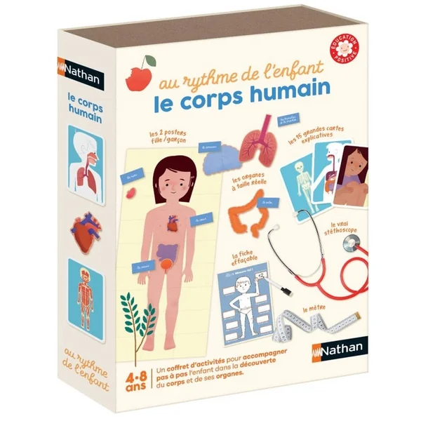 Au rythme de l’enfant le corps humain est un coffret d’activités pour accompagner ludiquement pas à pas l’enfant dans la découverte et l’apprentissage de son anatomie !