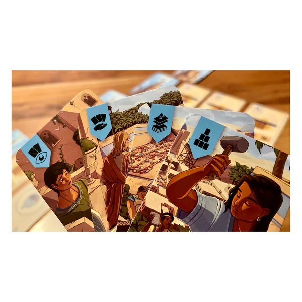 Les joueurs disposent toujours de 4 actions en main (construire, piocher, donner et révéler) qui permettent d’ériger la tour. Ces actions sont identifiées par leurs symboles, car les mots qui leur sont associés changent au cours de la partie. Les joueurs ne sont pas autorisés à exécuter d’actions pendant leur propre tour. À la place, ils doivent donner des consignes à d’autres joueurs pour qu’ils effectuent les actions. L’une des actions les plus importantes est l’action construire, qui permet de placer une carte Bâtiment dans la tour en payant le coût en Matériaux correspondant.