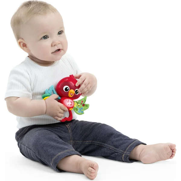 En appuyant sur le bouton central, vous illuminerez Roxy et entendrez plus de 10 mélodies classiques et sons d’oiseaux. Roxy a une aile avec des chiffres de 1 à 3 et des couleurs bleu, rouge et jaune, qui aident les parents à enseigner les couleurs et les chiffres. L’aile texturée avec un accessoire à 2 anneaux pour perles favorise l’exploration sensorielle de l’enfant et soutient également le développement de la motricité fine. Convient aux enfants à partir de 3 mois.