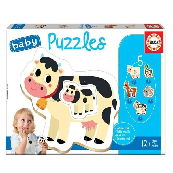 5 puzzles de 2 à 4 pièces, sur le thème des animaux de la ferme, pour les tout-petits dès 12 mois. Composés de grandes pièces, épaisses et faciles à manipuler, ils développent l’attention, la psychomotricité, la curiosité et l’imagination des plus petits. Matière : Carton FAQ