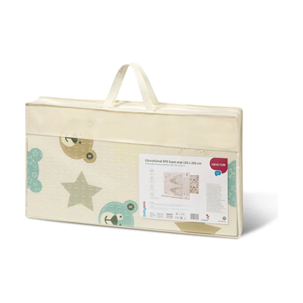 Le tapis se plie facilement et rapidement pour être compact et prendre peu de place. C’est aussi une excellente solution pour les parents qui voyagent. La taille compacte du tapis permet un rangement facile, et il est également fourni avec un sac de transport.