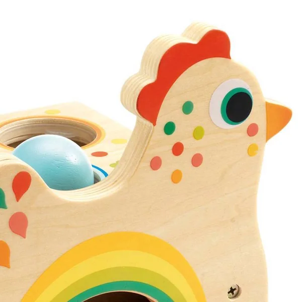 Représentant une jolie poule, ce jouet d’éveil en bois pour les filles et les garçons donne l’impression que Madame poule pond un oeuf lorsque les boules en bois tombent dans la boite…