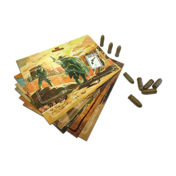 Bang ! Reloaded est un kit comprenant 34 balles en bois et 8 plateaux individuels en carton pour les joueurs.