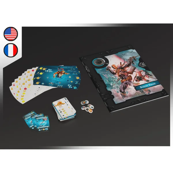 L’état a créé une unité secrète composée de super-criminels sacrifiable pour des missions dangereuses ou bien des situations inextricables. Dans ces cas, le gouvernement envoie la Suicide Squad. L’extension Suicide Squad pour le jeu Batman : Gotham City Chronicles – Season 2 introduit l’équipe de super-vilains dirigée par le pouvoir, la Suicide Squad, aussi connue sous le nom de Task Force X. Cette extension offre la possibilité aux joueurs d’incarner une équipe d’anti-héros emblématiques. Les joueurs vont ainsi se confronter à une nouvelle expérience de jeu axée sur des missions à haut risque et des personnages aux compétences variées et haut en couleur. Cette campagne de 3 scénarios, enrichit le jeu en permettant de vivre les aventures explosives et imprévisibles du Suicide Squad. Des QR Code à flasher se trouve au terme des missions pour pouvoir en apprendre plus. Que ce soit pour une campagne complète ou en scénarios isolés, cette extension ajoute une couche de profondeur et de chaos à l’expérience globale du jeu. Bien que chaque membre du Suicide Squad possède des compétences individuelles puissantes, leur véritable force réside dans leur capacité à combiner leurs talents pour atteindre leurs objectifs. C’est ainsi que lors de la création de votre équipe, vous allez choisir parmi 14 personnages pour composer votre escouade. Le premier sera votre chef et devra être sélectionné parmi les membres « officiels » du gouvernement puis vous sélectionnerez un membre représentant l’escouade S et u membre représentant l’escouade X. Ces derniers pourront être sélectionnés par exemple parmi Harley Quinn, Poison Ivy, Deadshot, King Shark, Captain Boomerang entre autres. Tous ces anti-héros possèdent leur propre fiche de personnage ainsi que leurs équipements dédiés. Enfin, chaque personnage possède sa tuile ainsi que la description de son pouvoir pour les utiliser dans le mode Versus. Contenu :