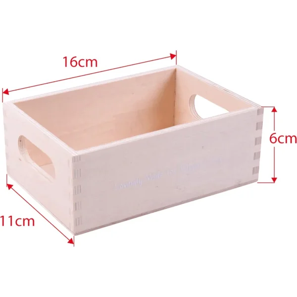Cette robuste et naturelle boîte en bois est idéale pour le stockage des jouets, des produits et d’autres objets.