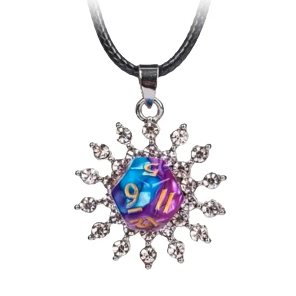 Bijoux Pendentif Soleil Dés D12 violet/bleu – Epic Forge