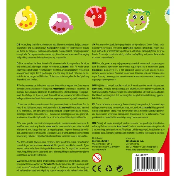 Le puzzle coloré correctement conçu affiche des chiffres simples jusqu’à 10 ! Il soutient les compétences motrices de l’enfant et la reconnaissance des formes et des couleurs.