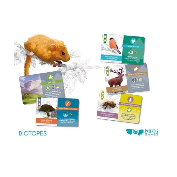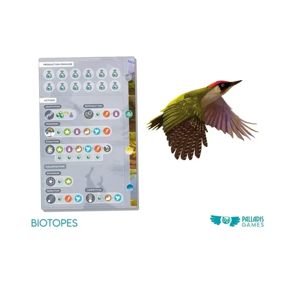 Biotopes est un jeu initié de développement et de contrôle de territoire, édité par Palladis Games et fabriqué en France. Partie de 90 minutes pour 1 à 5 joueurs dès 12 ans.