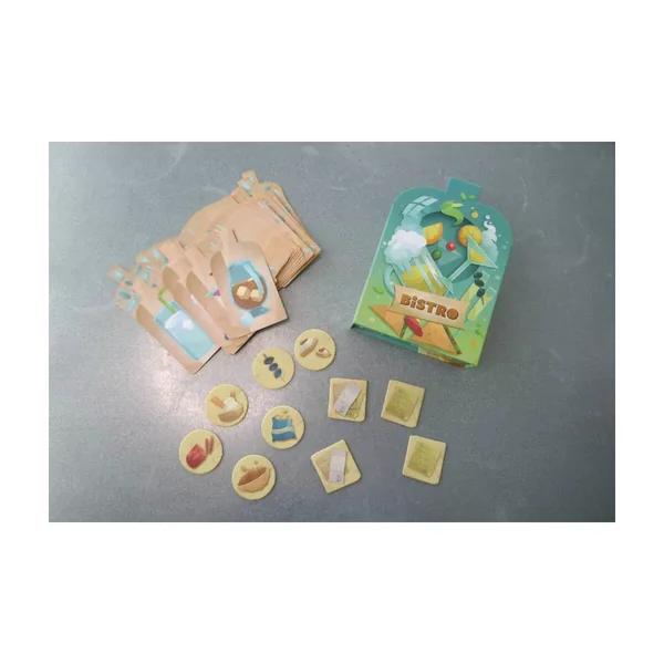 Bistro est un jeu de société de bluff jouable de 3 à 6 joueurs, dès 8 ans pour des parties d’environ 15 minutes.