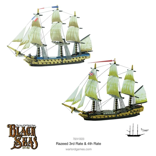 Les navires Razeed qui en résultaient étaient plus stables dans les mers agitées et plus rapides. Les navires de 64 canons de 3e classe sont rasés pour devenir des navires de 44 canons – ils sont classés comme des frégates bien qu’ils soient généralement plus performants que les frégates construites à cet effet à l’époque. Le HMS Indefatigable est un 3rd Rate Razeed bien connu.