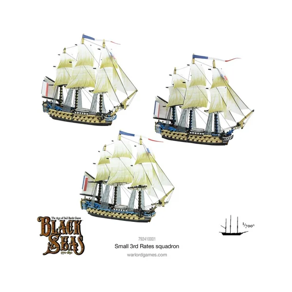 Dans Black Seas, un petit 3ème rang est classé comme un grand navire de 64 points de navire. Il n’est pas équipé d’une caronade et d’un canon léger à l’arrière mais il peut facilement surpasser les 1er et 2ème rangs.
