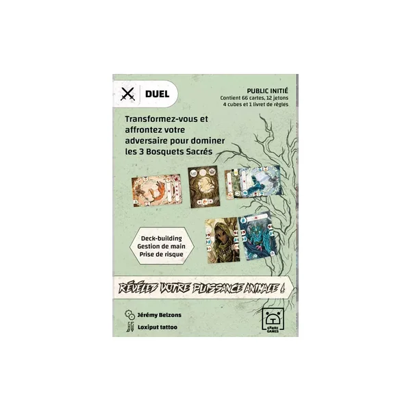 Transformez-vous, révélez votre puissance animale et affrontez votre adversaire pour dominer les 3 Bosquets Sacrés dans ce jeu de deck-building, de gestion de main et de prise de risque !