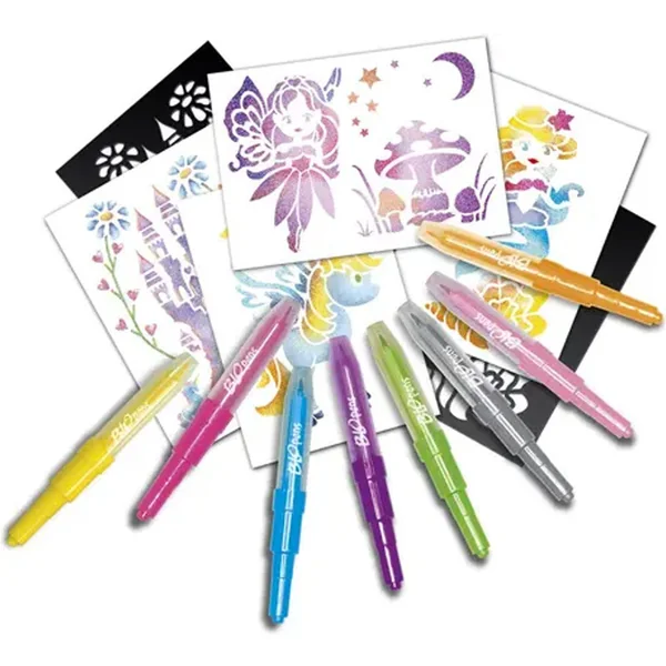 Les Blopens sont des feutres fantastiques ! Utilise un pochoir, souffle dans le stylo et regarde ton dessin apparaître avec un effet aérographe !