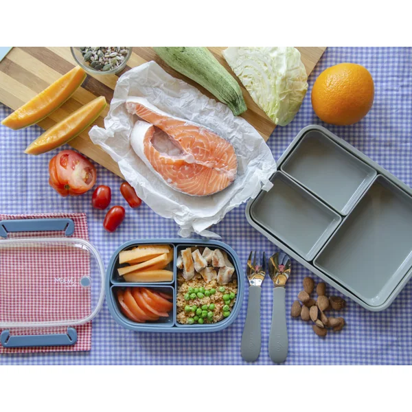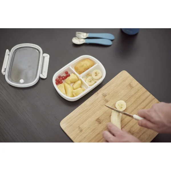 Le compartiment intérieur se compose de 3 compartiments qui peuvent être retirés individuellement. Le couvercle est équipé d’un joint pour éviter les fuites de liquides.