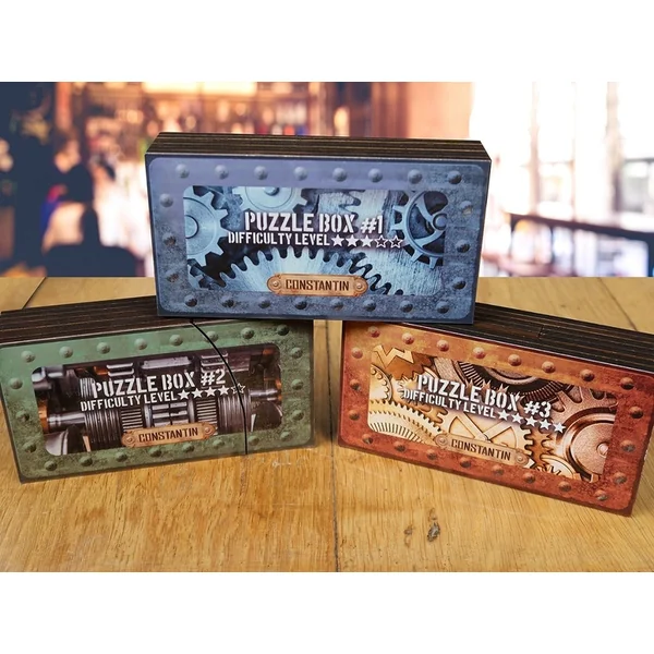 Depuis des siècles, les boîtes secrètes sont utilisées pour le stockage et le transport de messages très importants ou de petits objets de valeur. RecentToys, en collaboration avec Jean Claude Constantine, propose des boîtes secrètes uniques dans 3 niveaux de difficulté différents. Saurez-vous trouver un moyen d’ouvrir la boîte et de découvrir le compartiment caché ?