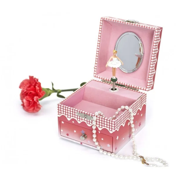 UNE BOÎTE MUSICALE POUR RANGER SES BIJOUX : Cette boîte à musique en forme de cube et disposant d’un tiroir émerveillera une jeune fille qui y rangera ses bijoux & secrets. Actionnez la manivelle et la figurine Ballerine s’anime comme par magie au son de la musique !
