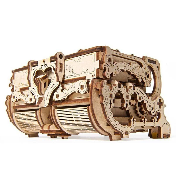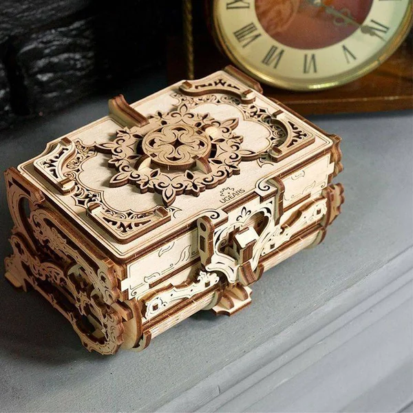 Comme tous les autres modèles Ugears, la Boite Antique est livrée avec des instructions pas à pas, en couleur, vraiment faciles à suivre (en 11 langues: ukrainien, anglais, allemand, français, polonais, espagnol, russe, turc, italien, chinois et coréen) et ne nécessite ni colle ni outils spéciaux pour être entièrement assemblée.