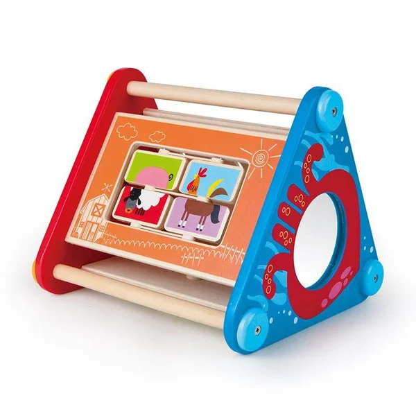Cette boîte d’activité à 5 faces est composée d’engrenages, de boules, de blocs et d’un labyrinthe ainsi que de couleurs, de mouvements et d’un miroir pour refléter le sourire de votre enfant.