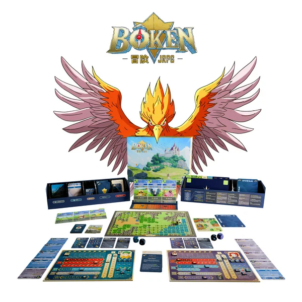 Bôken a pour vocation de retranscrire de manière fidèle l’expérience des JRPG sur console des années 80-90 dans un jeu de plateau. C’est un jeu d’aventure coopératif ou solo pour 1 à 2 joueurs, qui devront s’entraider pour vaincre le jeu.