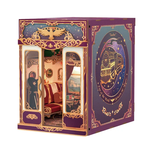 Ce Book Nook contient tout le nécessaire pour construire votre maquette miniature : des pièces en bois parfaitement ajustées, des accessoires miniatures détaillés et soignés, un éclairage LED avec interrupteur tactile, et un manuel illustré en français pour un pur moment de détente.